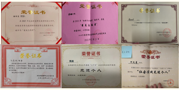 在学院层面:大一期间,12名同学加入校级、院级学生组织,大二期间10名同学担任各学生组织部长。大三期间两名同学担任学生组织负责人并获得了优秀学生干部、优秀团干部、优秀团员等荣誉称号。,2022年五月荣获校级五四红旗团委。